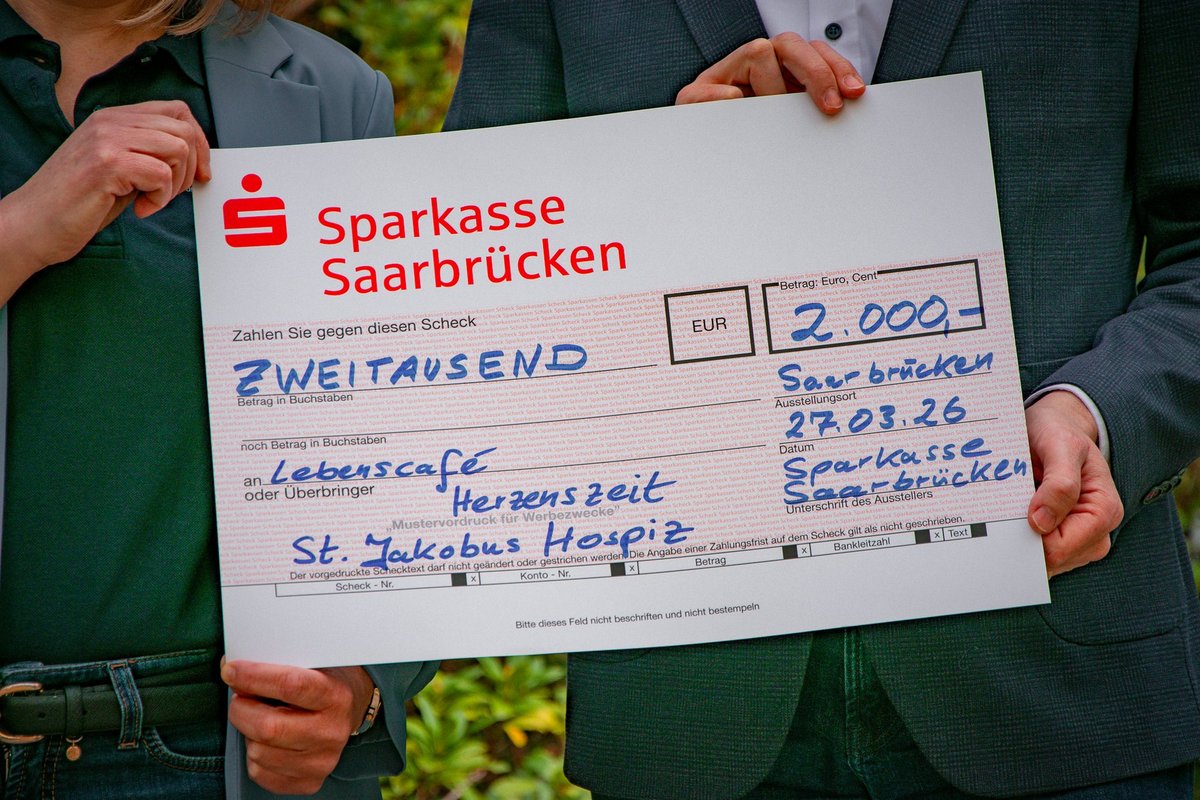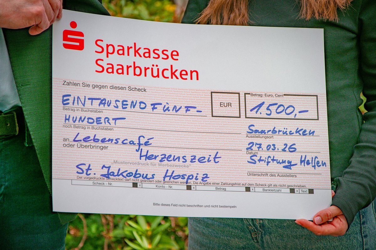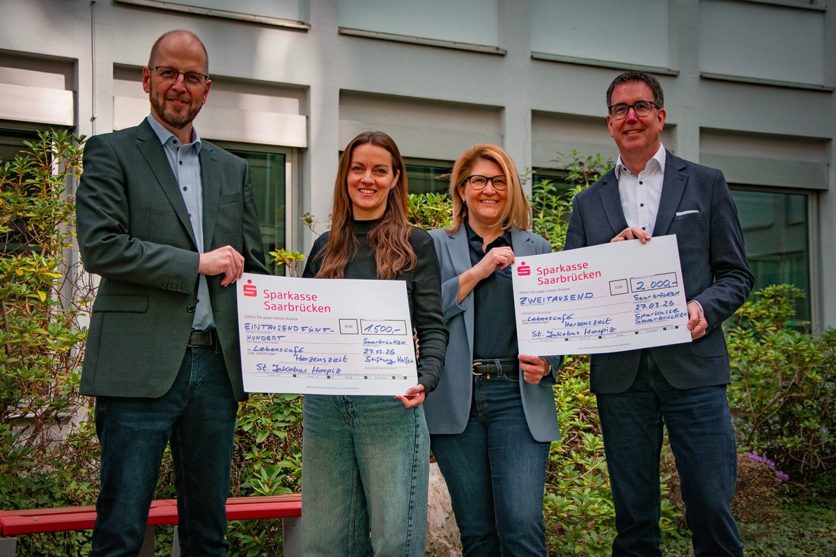 Die St. Jakobus Hospiz gGmbH freut sich über die Unterstützung ihres neuen Ehrenamtsprojekts „Lebenscafé Herzenszeit“ durch die Sparkasse Saarbrücken und die Stiftung Helfen. Mit der Übergabe von zwei Spendenschecks setzen beide Partner ein wichtiges Zeichen für Menschlichkeit, Solidarität und gelebtes gesellschaftliches Engagement in der Region. Mit dem Lebenscafé entsteht ein neues Angebot des St. Jakobus Hospiz, das eine wichtige Lücke in der Trauerbegleitung schließt: ein offener und geschützter Raum für Menschen, die einen Verlust erlebt haben. Das Angebot richtet sich an Trauernde unabhängig davon, ob sie zuvor durch das Hospiz begleitet wurden. In einer achtsamen Atmosphäre bietet das Lebenscafé Raum für Begegnung, Austausch und individuelle Begleitung. Ziel ist es, Einsamkeit zu begegnen, seelische Stabilität zu stärken und Trauerprozesse behutsam zu begleiten.