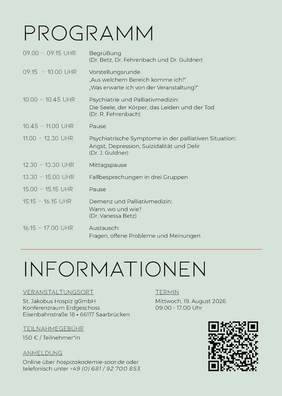 veranstaltungsort: St. Jakobus Hospiz gGmbH Konferenzraum Erdgeschoss Eisenbahnstraße 18 • 66117 Saarbrücken